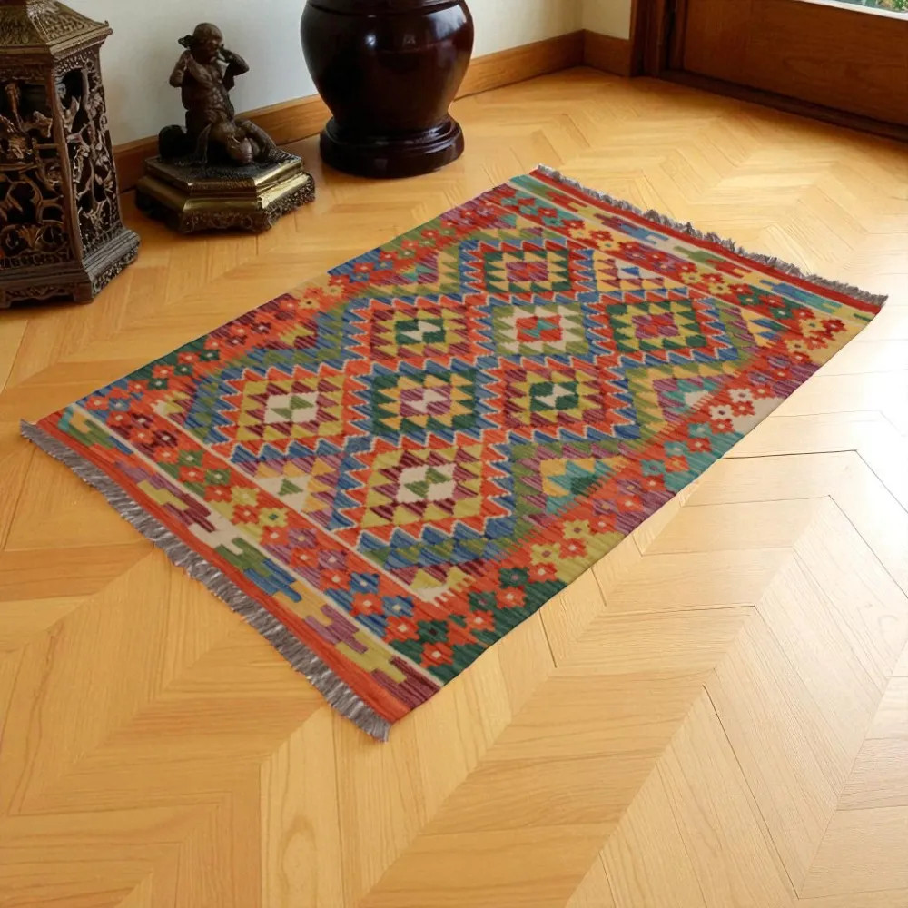 Wool Kilim rug Chobi 144x102 handwoven nomad Kilim rug