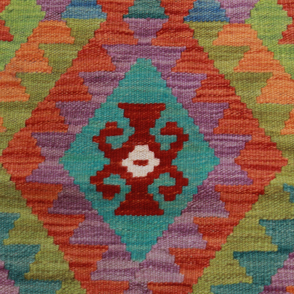 Choosing the perfect Chobi wool Kilim rug can be a challenging task as each piece holds exceptional beauty. The hand woven afghan Kelim rug in our collection offers a unique charm that can enhance any home. This particular Chobi wool Kilim rug is crafted from 100% Afghan wool, guaranteeing durability and a long lifespan. It features vibrant colors and intricate patterns that add a touch of elegance to any room, be it the living room or even the wardrobe. The lightweight nature of the Kilim allows it to be used not only as a floor covering but also as a decorative wall hanging. Handwoven in Maymanah province, Afghanistan, these rugs undergo a meticulous process where they are washed four times to ensure lasting and vivid colors.