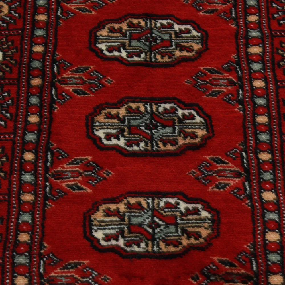 This exquisite Pakistani rug is hand-knotted to the highest quality standards, ensuring a soft touch and long-lasting durability. The Bukhara motif, one of the most recognizable patterns, showcases the rich cultural heritage of Pakistan. Its natural wool composition provides excellent insulation, making it ideal for any season. With its easy-to-clean surface, this runner carpet is perfect for high-traffic areas like hallways, adding both comfort and style. Experience the warmth and elegance it brings to your home, whether in the living room or bedroom.