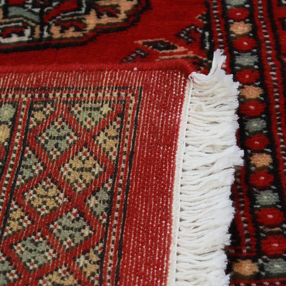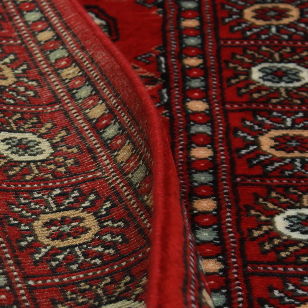 Pakistani carpet is made in the provinces of Punjab and Sindh. Reflecting a centuries-old tradition, this oriental carpet is a tribute to the craftsmanship and artistry of artisans. Pakistani carpets are renowned worldwide for their quality and carry the rich cultural heritage of Pakistan. The design and manufacturing techniques of this oriental carpet originate from the Turkmen people, who traded them in the old carpet market of the famous city of Bukhara. One of the most famous designs (Bukhara) takes its name from here and has been a defining feature of these beautiful oriental carpets ever since. Pakistani carpets are made from New Zealand Merino wool, which provides outstanding quality and durability. Thanks to their dense knotting, they are long-lasting and resistant to wear and tear from everyday use. This elegant rug is now considered one of the finest wool rugs in Pakistan. After being made and sheared, the carpet is washed four times and then carefully dried to retain its vibrant colours and colour fastness. With their geometric patterns and elegant colours, they add a unique ambience to your home, whether it's a living room carpet to enhance the elegance of the room or a bedroom carpet that adds comfort and softness to your steps. Also, an ideal choice for hallways is the Pakistani runner carpet. If you are looking for a unique oriental carpet that is made of quality material and shows artistic craftsmanship, Pakistani wool carpets are the perfect choice. The harmonious combination of sophisticated patterns and vibrant colours will create a magical atmosphere in any part of the room. A Pakistani carpet is not only aesthetically pleasing but also extremely practical. Its densely knotted surface is durable and resistant, allowing it to remain in beautiful condition for many years. In addition, the natural properties of the wool material allow it to insulate the floor, giving it excellent thermal insulation properties. Pakistani carpets are available in a wide range of sizes and shapes, so everyone can find the best one for their home.