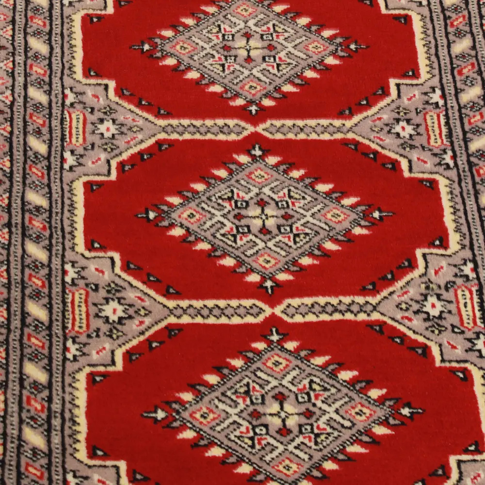 Pakistani carpet is made in the provinces of Punjab and Sindh. Reflecting a centuries-old tradition, this oriental carpet is a tribute to the craftsmanship and artistry of artisans. Pakistani carpets are renowned worldwide for their quality and carry the rich cultural heritage of Pakistan. The design and manufacturing techniques of this oriental carpet originate from the Turkmen people, who traded them in the old carpet market of the famous city of Bukhara. One of the most famous designs (Bukhara) takes its name from here and has been a defining feature of these beautiful oriental carpets ever since. Pakistani carpets are made from New Zealand Merino wool, which provides outstanding quality and durability. Thanks to their dense knotting, they are long-lasting and resistant to wear and tear from everyday use. This elegant rug is now considered one of the finest wool rugs in Pakistan. After being made and sheared, the carpet is washed four times and then carefully dried to retain its vibrant colours and colour fastness. With their geometric patterns and elegant colours, they add a unique ambience to your home, whether it's a living room carpet to enhance the elegance of the room or a bedroom carpet that adds comfort and softness to your steps. Also, an ideal choice for hallways is the Pakistani runner carpet. If you are looking for a unique oriental carpet that is made of quality material and shows artistic craftsmanship, Pakistani wool carpets are the perfect choice. The harmonious combination of sophisticated patterns and vibrant colours will create a magical atmosphere in any part of the room. A Pakistani carpet is not only aesthetically pleasing but also extremely practical. Its densely knotted surface is durable and resistant, allowing it to remain in beautiful condition for many years. In addition, the natural properties of the wool material allow it to insulate the floor, giving it excellent thermal insulation properties. Pakistani carpets are available in a wide range of sizes and shapes, so everyone can find the best one for their home.