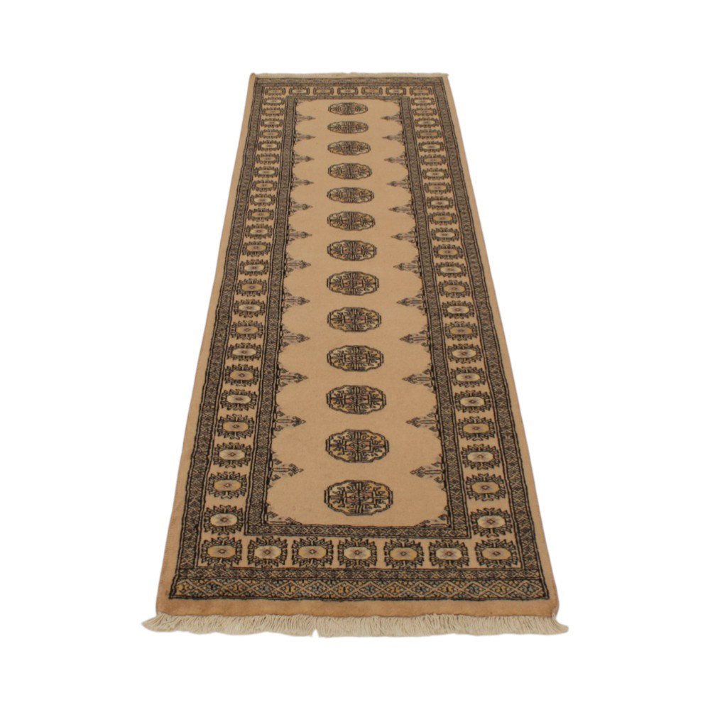 Runner rug beige Bokhara 248x77 handmade Pakistani rug