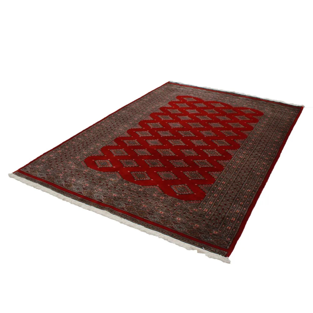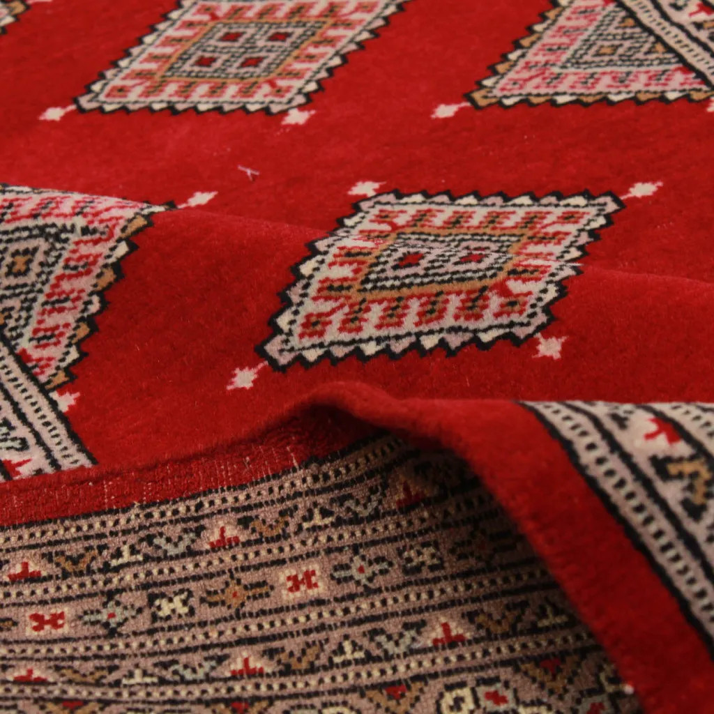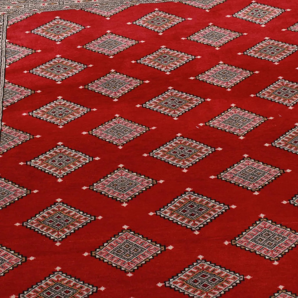 Pakistani carpet is made in the provinces of Punjab and Sindh. Reflecting a centuries-old tradition, this oriental carpet is a tribute to the craftsmanship and artistry of artisans. Pakistani carpets are renowned worldwide for their quality and carry the rich cultural heritage of Pakistan. The design and manufacturing techniques of this oriental carpet originate from the Turkmen people, who traded them in the old carpet market of the famous city of Bukhara. One of the most famous designs (Bukhara) takes its name from here and has been a defining feature of these beautiful oriental carpets ever since. Pakistani carpets are made from New Zealand Merino wool, which provides outstanding quality and durability. Thanks to their dense knotting, they are long-lasting and resistant to wear and tear from everyday use. This elegant rug is now considered one of the finest wool rugs in Pakistan. After being made and sheared, the carpet is washed four times and then carefully dried to retain its vibrant colours and colour fastness. With their geometric patterns and elegant colours, they add a unique ambience to your home, whether it's a living room carpet to enhance the elegance of the room or a bedroom carpet that adds comfort and softness to your steps. Also, an ideal choice for hallways is the Pakistani runner carpet. If you are looking for a unique oriental carpet that is made of quality material and shows artistic craftsmanship, Pakistani wool carpets are the perfect choice. The harmonious combination of sophisticated patterns and vibrant colours will create a magical atmosphere in any part of the room. A Pakistani carpet is not only aesthetically pleasing but also extremely practical. Its densely knotted surface is durable and resistant, allowing it to remain in beautiful condition for many years. In addition, the natural properties of the wool material allow it to insulate the floor, giving it excellent thermal insulation properties. Pakistani carpets are available in a wide range of sizes and shapes, so everyone can find the best one for their home.