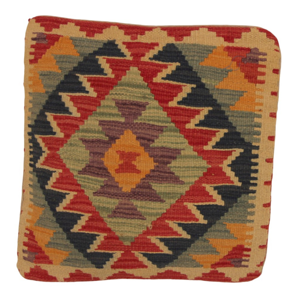 Check out this hand woven Kilim decorative cushion, that is the perfect blend of traditional Afghan carpet weaving and stylish home decor. This unique Kilim cushion cover will bring any interior to life with its stylish appearance, rich colours and stunning patterns. The hand woven cushion cover is made from original Afghan Kilim rug, which harmonises perfectly with variety furniture and interior design styles. The vibrant colours and unique patterns create an exciting visual impact and enhance the ambience of your room, whether it's a living room or bedroom. Made from Afghan wool, Kilim cushion cover is easy to care for, so maintenance is simple. In addition, the durability of the material ensures that you can enjoy the beauty of a Kilim decorative cushion on your furniture for years to come. The colours and patterns of the Kilim cushion will remain vibrant for a long time, thanks to the thorough washing after the weaving process. This careful treatment guarantees the long life and original beauty of the cushion cover. The colourful Kilim decorative cushions offer a wide range of possibilities for interior design ideas. Whether you want to create a unique atmosphere in your room or to enhance your existing furniture, a colourful Kilim cushion is the perfect choice.